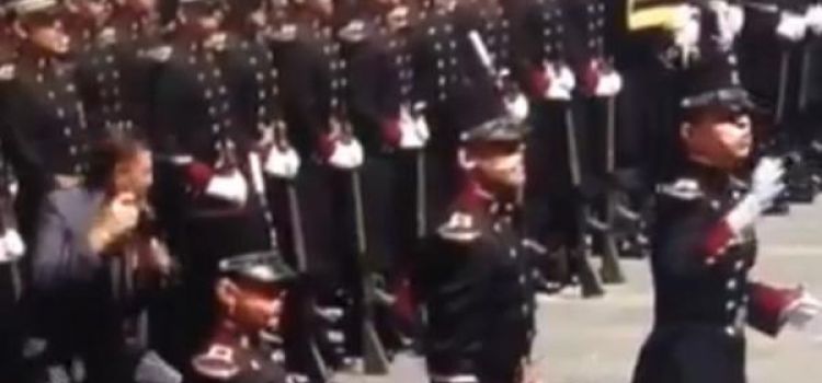 El video del incidente fue compartido a través de la cuenta de Twitter de Salvador Zaragoza A. @SalvadorZA, quien lamentó lo ocurrido; "Pobre cadete. Vaya golpazo que se dio esta mañana en el evento que encabezó @EPN".