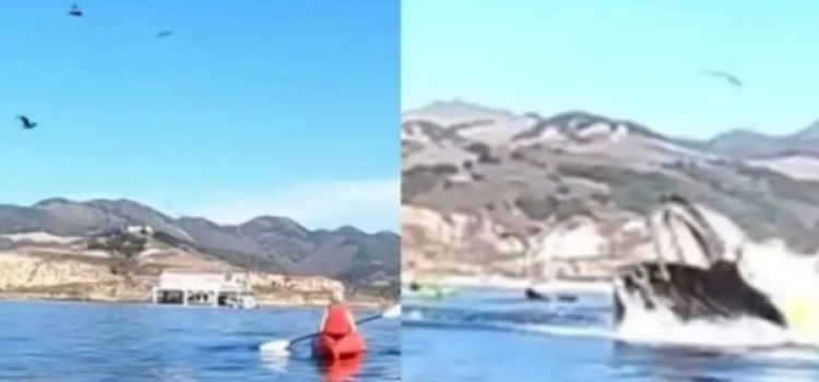 En Avila Beach, California, una ballena jorobada fue captada intentando comerse a dos mujeres que remaban tranquilamente.