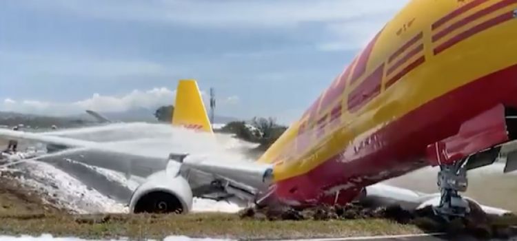 Avión de DHL se parte en dos durante aterrizaje en Costa Rica