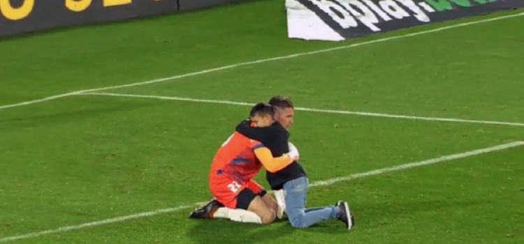 Tras lo anterior, un pequeño aficionado ingresó a la cancha para consolar al portero, a quien le dio un abrazo, luego de unos segundos se acerca Nazareno Colombo para abrazar al arquero y felicitar al niño por su gesto.